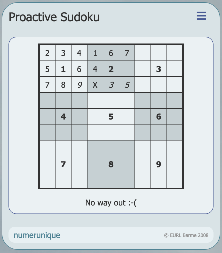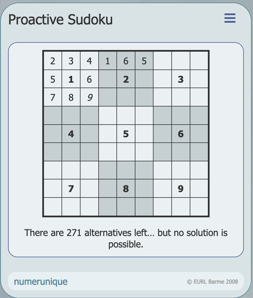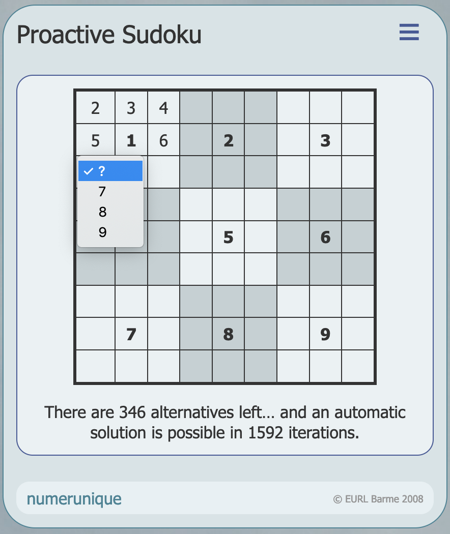 Notice the numbers in italics here. They are automatically suggested when only one implicit choice remains for a cell. Why ask the user to validate a decision that is obvious?
