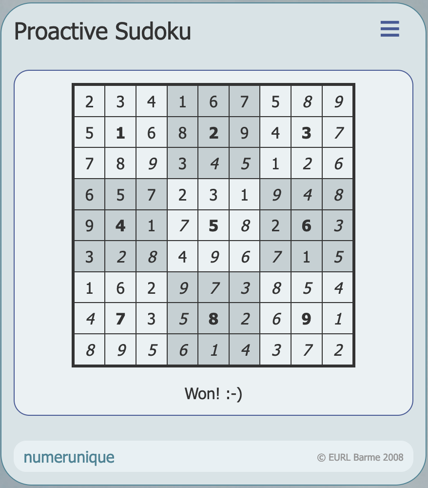 No, here the topic of sudoku is merely a pretext to illustrate the philosophy and know-how of numerunique in the specific field of designing and developing custom software.